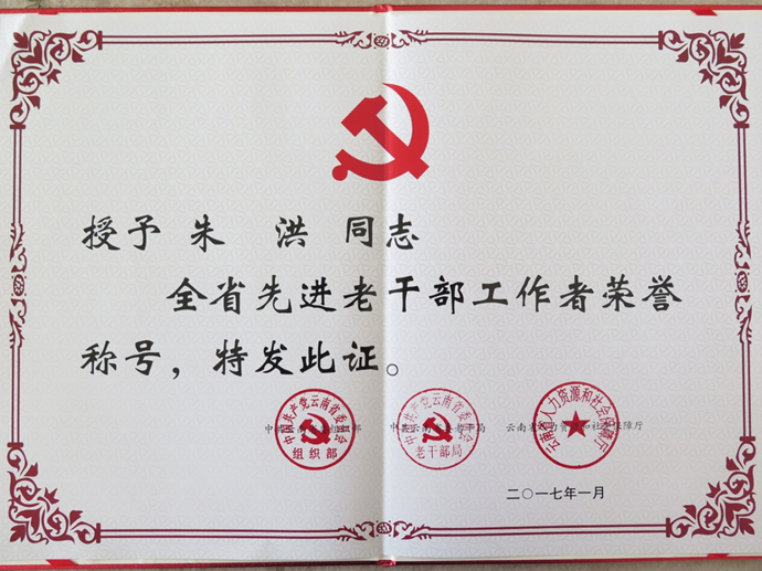 我廠朱洪同志被授予“全省老干部先進工作者”榮譽稱號