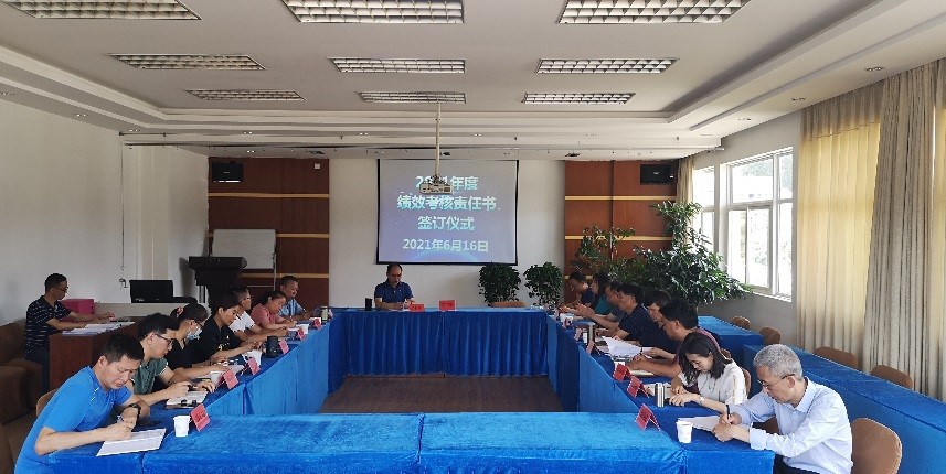 2021年6月16日,公司召開2021年度公司績效考核責(zé)任書簽訂會,公司領(lǐng)導(dǎo)、副總工程師、四個分公司經(jīng)理、總部各部門負(fù)責(zé)人、績效考核小組成員參加簽訂會,旭潤公司總經(jīng)理列席簽訂會。公司副總經(jīng)理潘彥吉主持簽訂會。