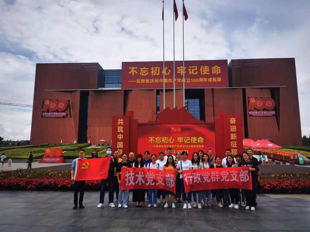 2021年8月19日,行政黨群黨支部與技術(shù)黨支部聯(lián)合組織開(kāi)展以“不忘初心、牢記使命”為主題的紅色教育黨日活動(dòng)。兩個(gè)支部的三十多名黨員、入黨積極分子統(tǒng)一乘車來(lái)到了云南省博物館參觀了“不忘初心、牢記使命”——云南省慶祝中國(guó)共產(chǎn)黨成立100周年成就展。