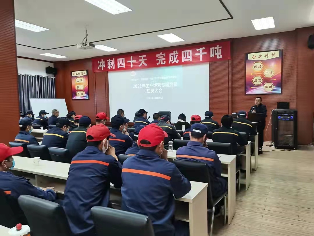 2021年11月19日上午,公司在安寧分公司召開(kāi)“沖刺四十天,完成四千噸”動(dòng)員大會(huì)。安寧分公司常務(wù)副經(jīng)理?xiàng)蠲y主持會(huì)議,公司總部相關(guān)職能部門負(fù)責(zé)人、安寧分公司中層以上管理人員及部分員工代表56人參加大會(huì)。公司黨委書(shū)記,董事長(zhǎng)高劍、黨委副書(shū)記,總經(jīng)理彭長(zhǎng)華到會(huì)做發(fā)言。