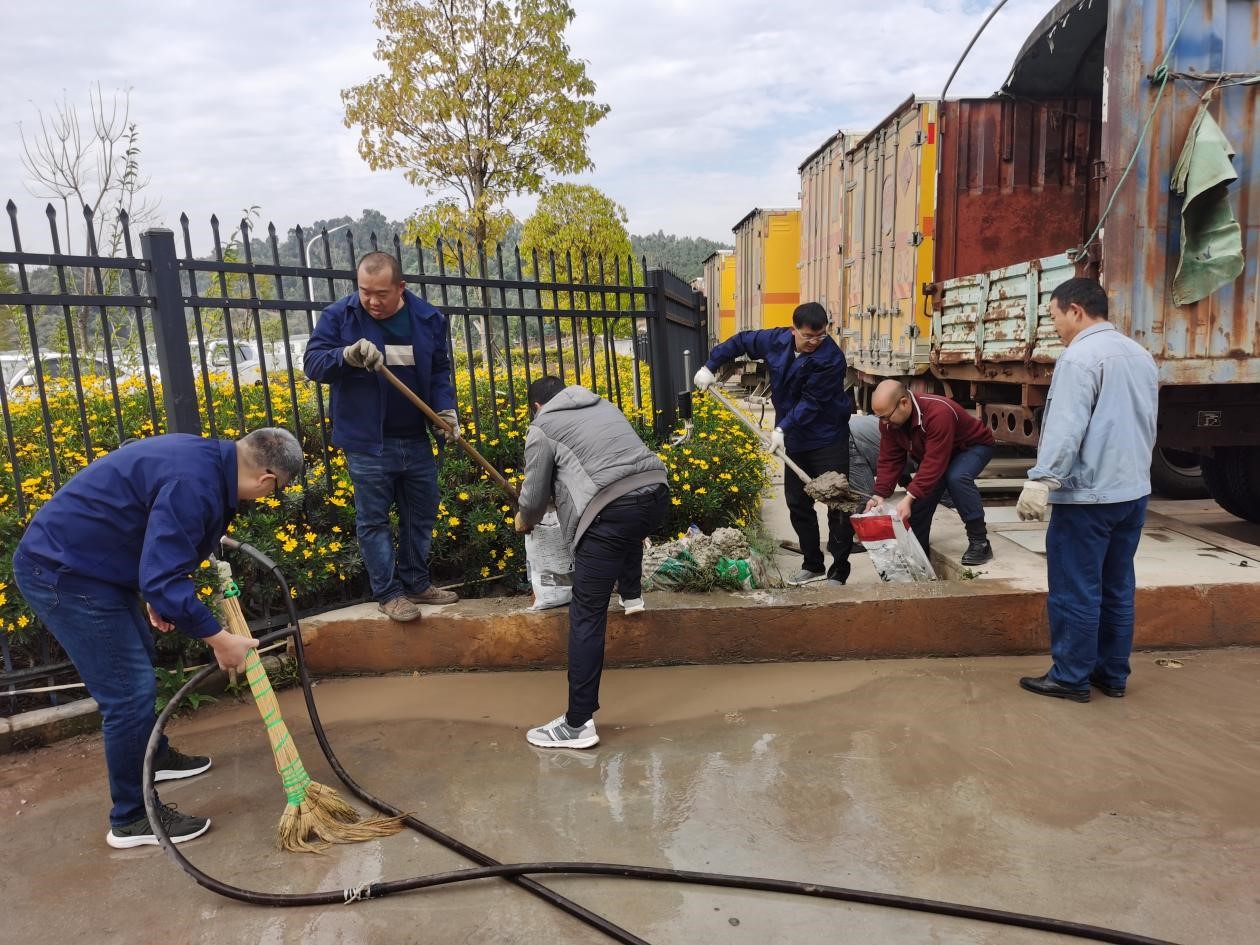 清理過程中大家手持鏟子、掃把,發(fā)揚(yáng)不怕苦,不怕臟的精神。在沒有準(zhǔn)備、沒有組織的情況下大家配合的相當(dāng)有默契,分工合作,有的緊握手中的鏟子,一鏟接一鏟地把淤泥鏟到口袋里,有的掙著口袋,還有的把淤泥搬上車,通過大家齊心協(xié)力,加水、洗車區(qū)的雜草、淤泥等清理的干干凈凈,整潔無雜物的地面衛(wèi)生與停放整齊有序的車輛相互呼應(yīng),營(yíng)造出使人身心放松的工作環(huán)境。