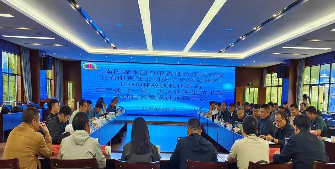 近日,云南省國防科技工業(yè)局在公司組織召開了云南安化有限責(zé)任公司安寧分公司年產(chǎn)14000噸膠狀乳化炸藥生產(chǎn)線(一號)少人化安全技術(shù)改造項目、云南民爆集團(tuán)昆明金沙人化工有限責(zé)任公司年產(chǎn)12000噸膠狀乳化炸藥生產(chǎn)線少人化安全技術(shù)改造項目、云南安寧化工廠有限公司武定分公司年產(chǎn)12000噸膠狀乳化生產(chǎn)線少人化安全技術(shù)改造項目和玉溪分公司年產(chǎn)12000噸粘性粒狀炸藥生產(chǎn)線少人化安全技術(shù)改造項目方案設(shè)計審查會議,會議成立了審查專家組。昆明市工業(yè)和信息化局、昆明市東川區(qū)工業(yè)和科技信息化局、安寧市工業(yè)和科學(xué)技術(shù)信息化局、楚雄州工業(yè)和信息化局、武定縣工業(yè)信息化商務(wù)科學(xué)技術(shù)局、玉溪市工業(yè)和信息化局、玉溪市紅塔區(qū)工業(yè)和信息化局、云南省戎合投資控股有限公司、云南民爆集團(tuán)有限責(zé)任公司及技術(shù)提供方、設(shè)計方、安評方等單位參加了會議。