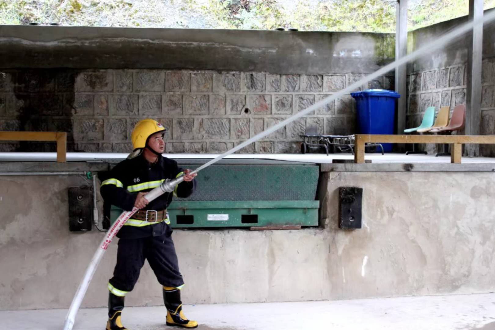 演練現(xiàn)場,事先擬定的成品總庫3號倉庫內(nèi)高溫起火,現(xiàn)場濃煙滾滾,火勢無法控制,倉庫內(nèi)數(shù)十噸成品直接危及到正在工作的庫管員、裝卸人員、成品車駕駛員及押運員的生命安全,稍有耽擱極易引起事故,情況十分危急。
