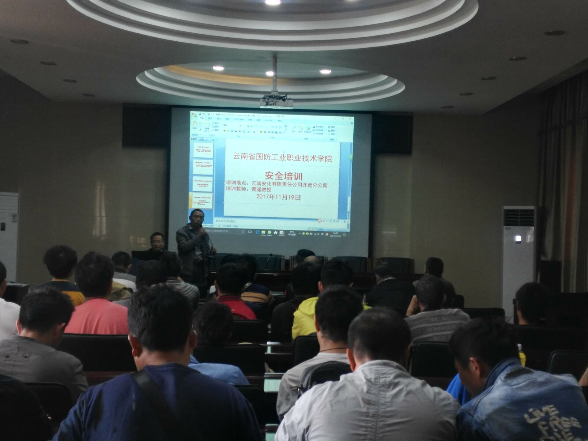 2017年11月19日,開遠(yuǎn)分公司聘請(qǐng)?jiān)颇祥_放大學(xué)化學(xué)工程學(xué)院夏建才和黃遙副院長(zhǎng)到分公司進(jìn)行安全培訓(xùn)。各科室負(fù)責(zé)人、生產(chǎn)車間職工、遠(yuǎn)安公司職工、專兼職安全員共71人參加培訓(xùn)。